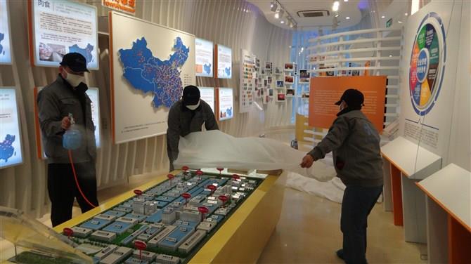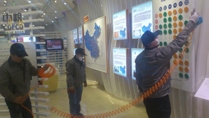 施工人員對(duì)業(yè)務(wù)展覽大廳進(jìn)行治理