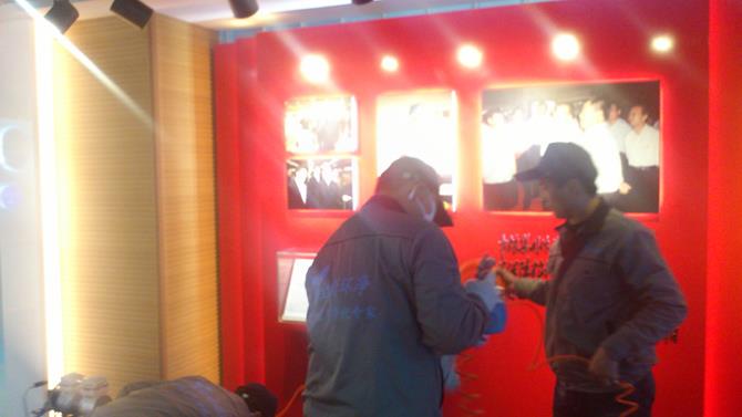施工人員對(duì)展板、墻壁進(jìn)行治理