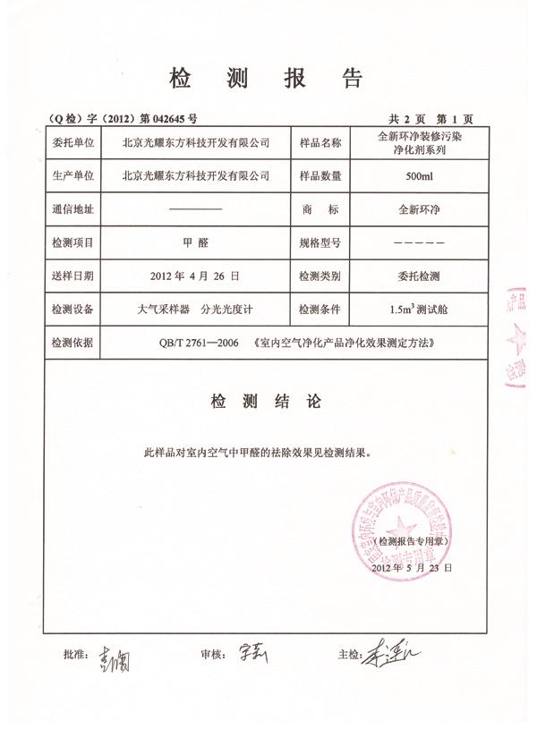 甲醛檢驗報告